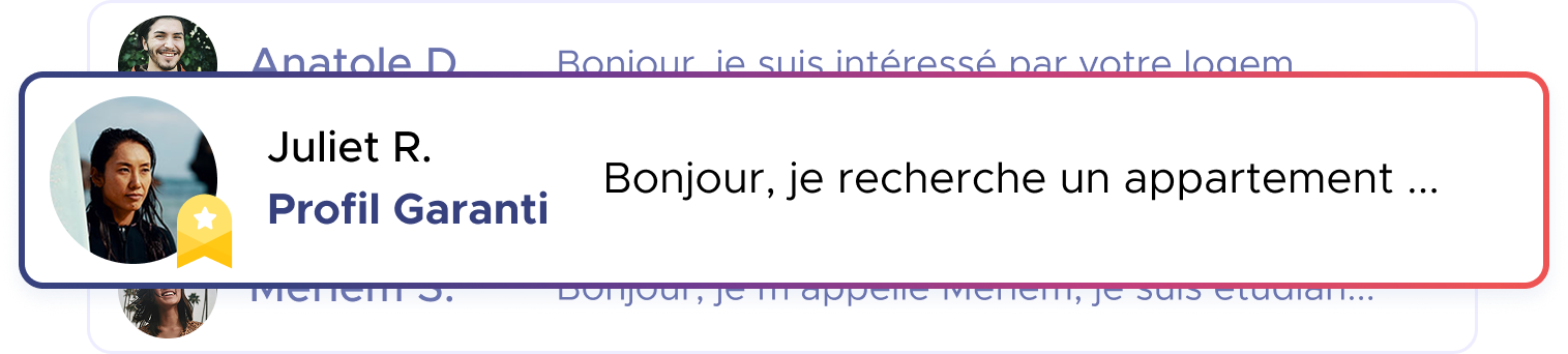En France, 9 loueurs sur 10 demandent un dossier de location avec un garant . Sans garant, les locataires mettent jusqu'à 4 fois plus de temps pour obtenir des réponses seulement. C'est pour cela que nous avons créé le Profil Garanti.